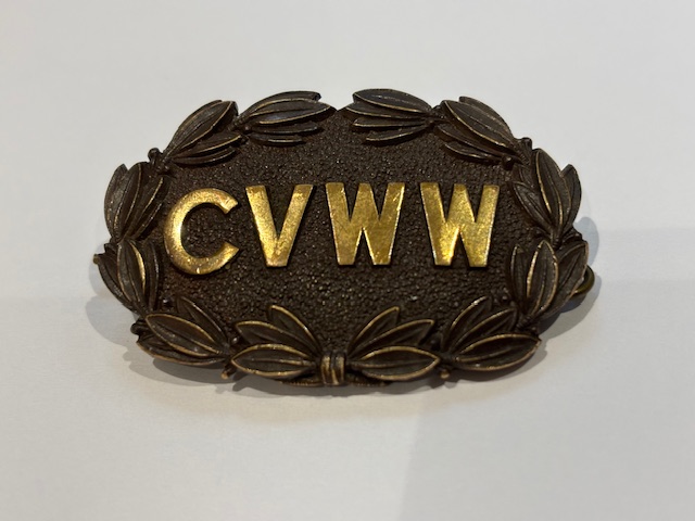 CVWW was recently contacted by an interested supporter who said that he had in his possession what he believed to be the only surviving CVWW Capbadge from WW2. The cap badge had been retained after the war by a Mr Wood, who had served on HMS Tiger during the 1914-18 war but had opted to join the Council for Voluntary War Work (CVWW) during WW2. He believed that only nine such cap badges had been issued and that most were handed back at the close of hostilities. He retained his and it is now been returned to the CVWW archives as a rare find. CVWW shoulder flashes were commonly worn by voluntary welfare workers but cap badges were reserved for only a few CVWW workers temporarily permitted to wear uniform near the front lines. The badge serves as a reminder of the extraordinary role played in the welfare of Service personnel by the original CVWW member organisations during WW2.
